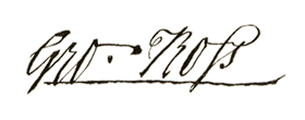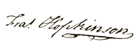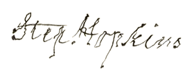 By 1774, a palsy in Hopkins’s hands made any attempt at writing painful. He could, however, speak his mind in Congress. He believed that war was inevitable and gave this ultimatum to his fellow delegates: “Powder and ball will decide this question. The gun and bayonet alone will finish the contest in which we are engaged, and any of you who cannot bring your minds to this mode of adjusting the quarrel, had better retire in time”. When it came time for Hopkins to sign the Declaration of Independence, the palsy that plagued him forced him to hold his right hand with his left to steady it. “My hand trembles,” he told his fellow delegates, “but my heart does not.”